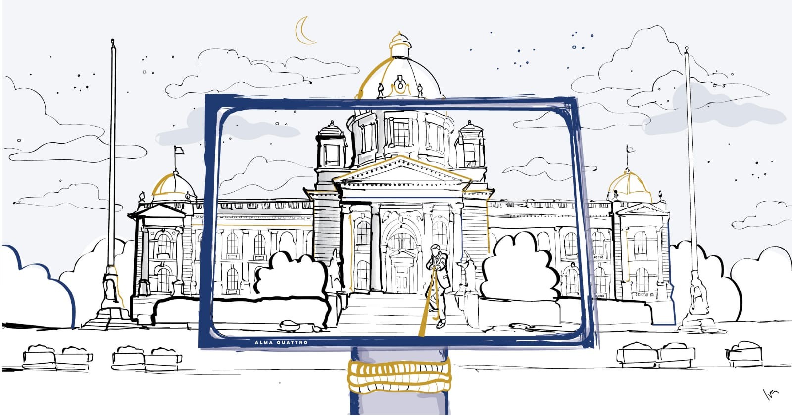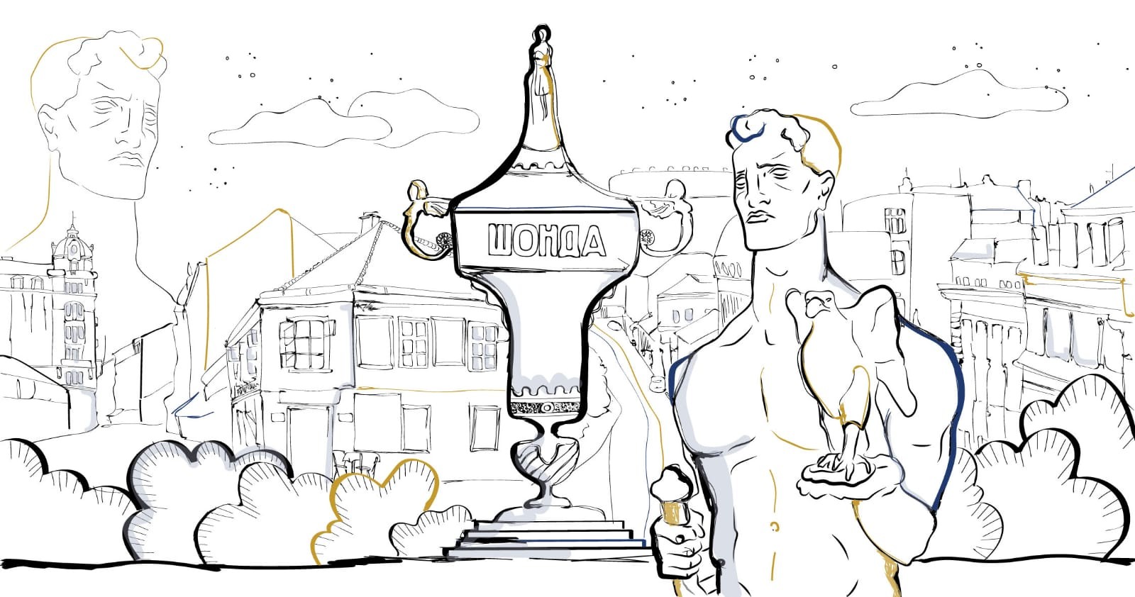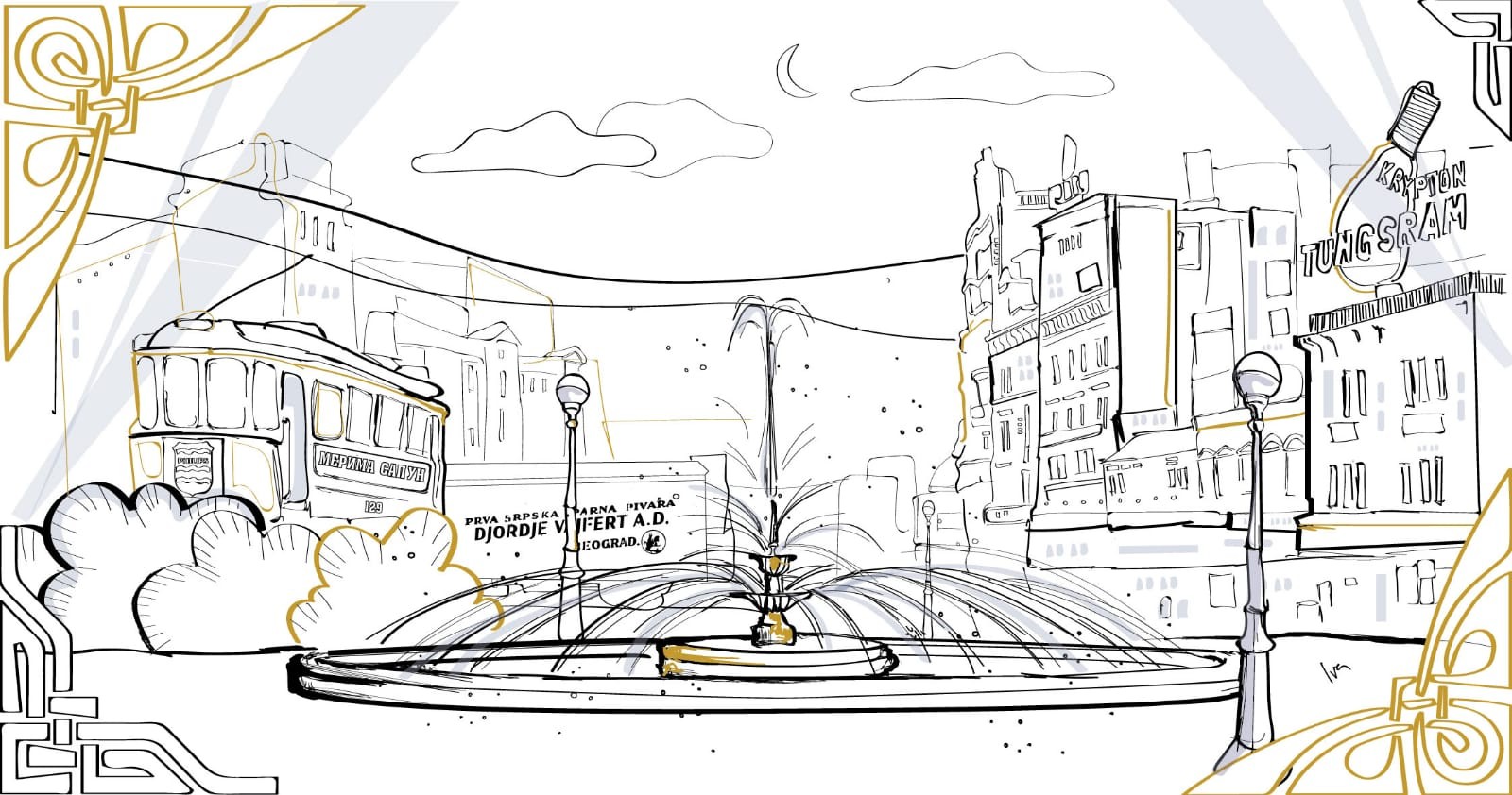 AN ADVERTISEMENT REFLECTED IN THE TERAZIJE FOUNTAIN