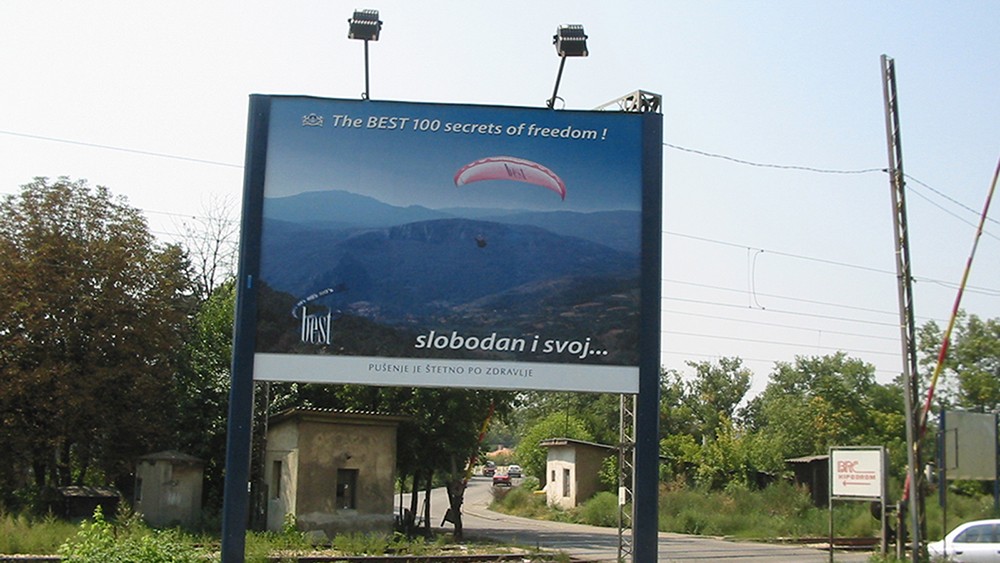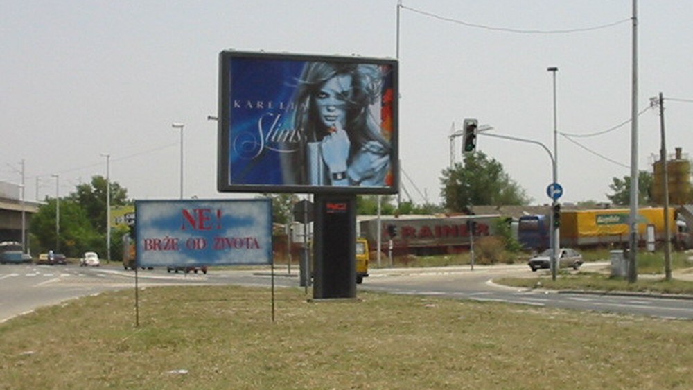 Zanimljivost: Kontrast intezivnom reklamiranju alkohola, 2002. godine je dala kampanja protiv brze vožnje za koju su angažovani Vlado Georgijev i Niggor, pod sloganom “NE! Brže od života”, oglasni pano kraj bilborda.