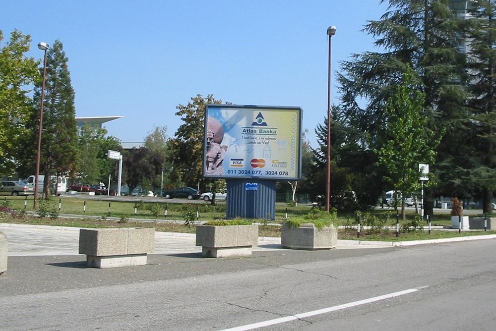 Atlas banka je bila jedan od prvih klijenata koji se oglašavao u okviru zatvorenog sistema medija u eksterijeru aerodroma Beograd. Landmark im je bio backlight pano na prilazu aerodromu sa institucionalnim rešenjem. Nikad imali neku "product" kampanju, ali su godinama bili prisutni na aerodromu sa tim jednim panoom.
