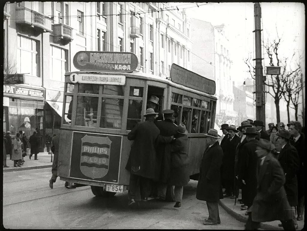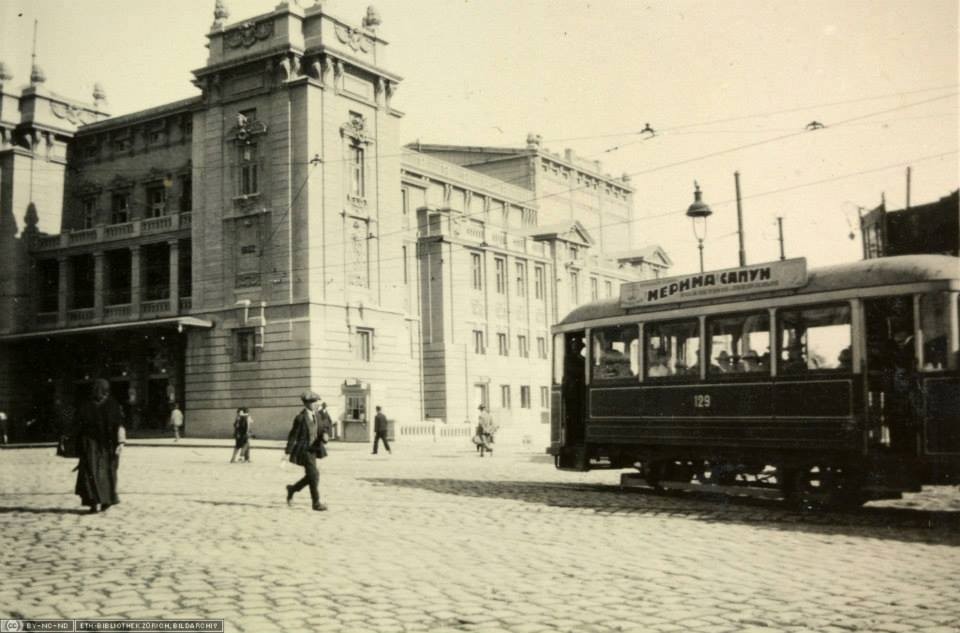 Prvi tramvaj je zaklackao niz kalrdmu Beograda 1894. godine a fotografija svedoči da se Merima Kruševac oglasila na vagonu jednog tramvaja 1937.