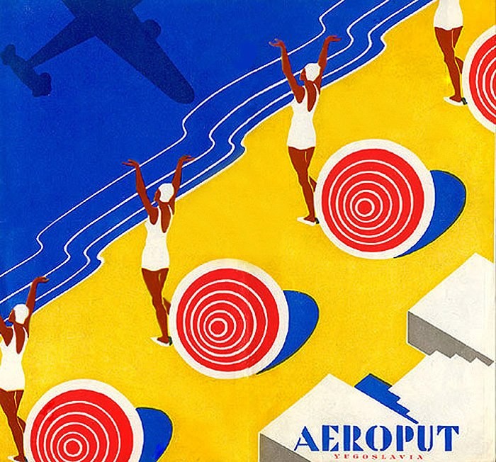Jedna od čudesnih ilustracija koja je krasila turističke brošure 1935. godine je i art deco reklama za preteču Air Serbia ili JAT-a. prvo akcionarsko društvo za civilni aviotransport Kraljevine, osnovano davne 1927. godine.