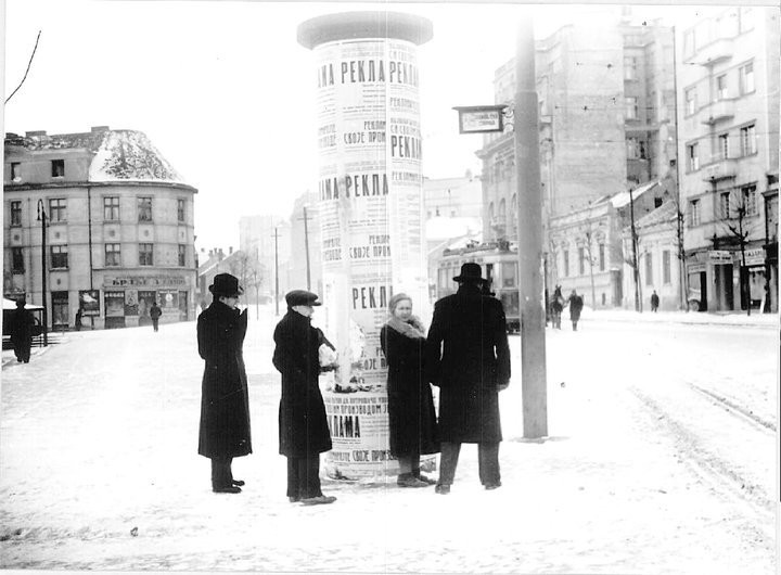 Na Terazijama se nalazio specifičan, četvrtasti reklamni stub sa slotovima za oglasne ploče. Ostaje pitanje da li je bio osvetljen i od čega su bile te oglasne ploče.