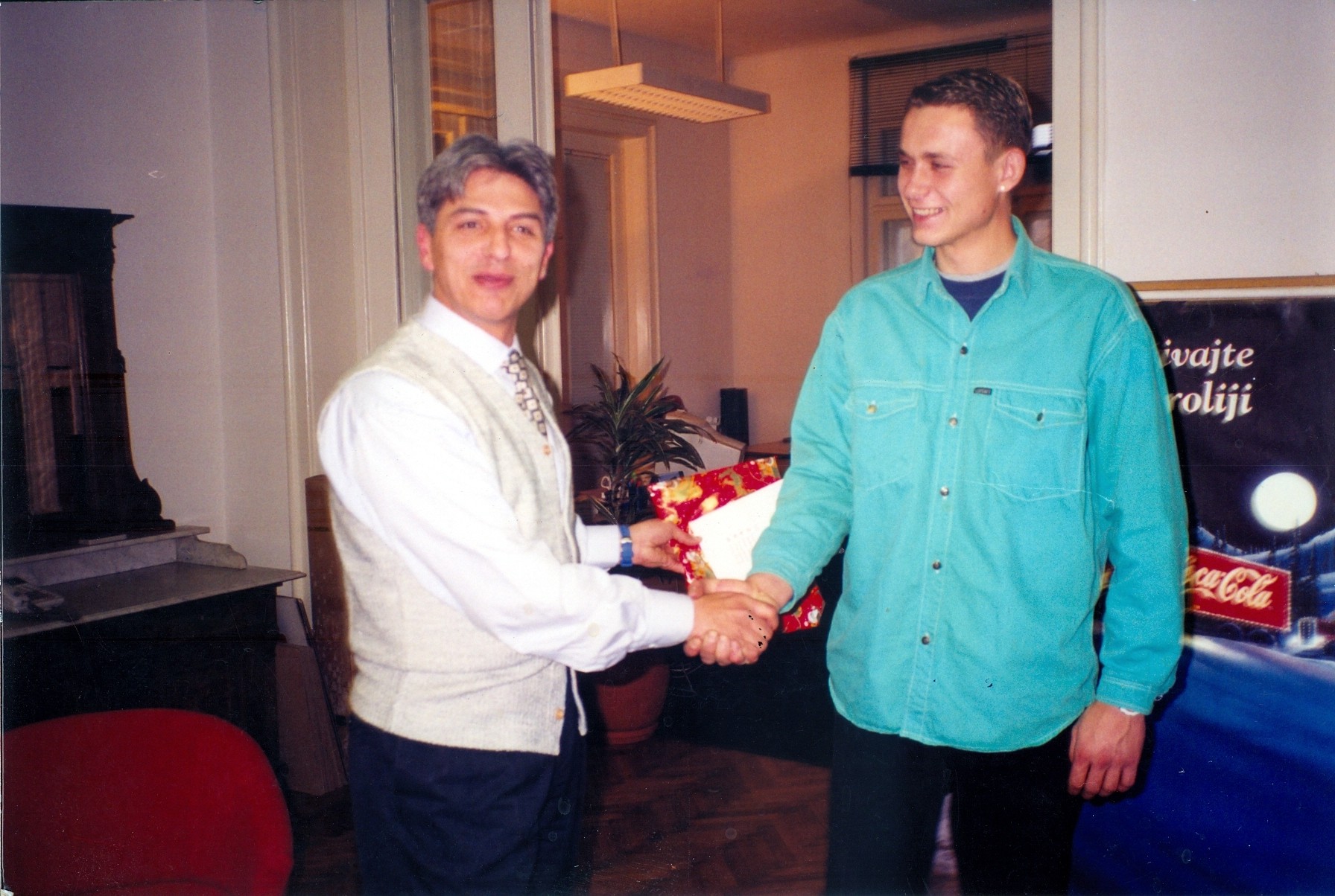U 1997. godini, pred Novu godinu, rukovodstvo Alme Quattro je svim zaposlenima poklonilo original Harley Davidson majce, tada luksuzno dobro. Na slici su Kosanče Dimitrijević i Nenad Đorđević.